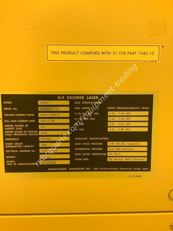 Missing: PRE-ALIGNMENT UNIT, RETICLE PN: GY1-0414-J00-000