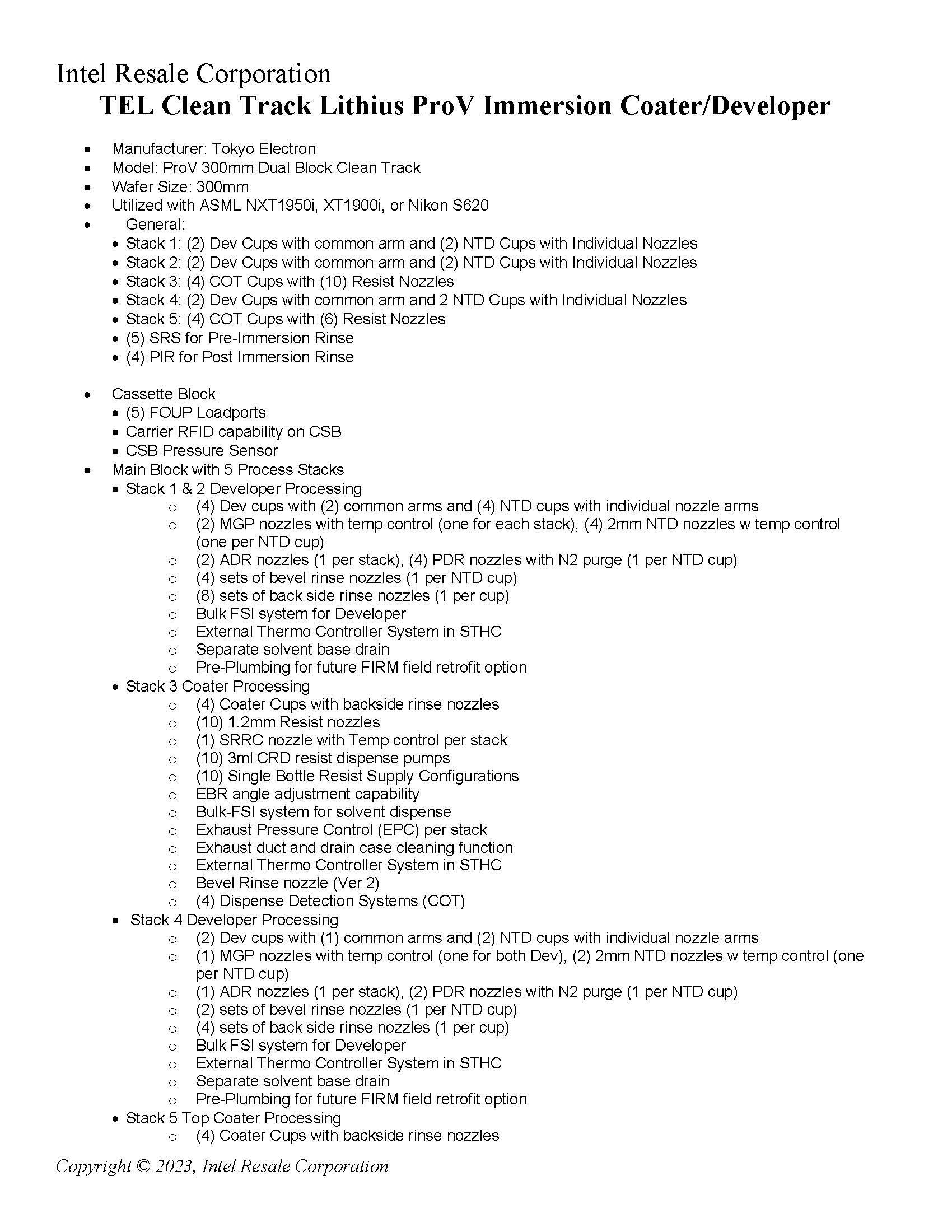 o (5) Spin Rinse Process Station (SRS) w/IDR nozzle and N2 Capability
