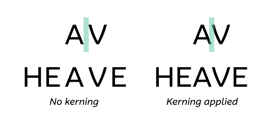 Figure 1: Kerning is the adjustment of spacing between individual letters to achieve a visually harmonious result. With no kerning, the space between the edge most points of each letter are equidistant, which creates an unbalanced result.