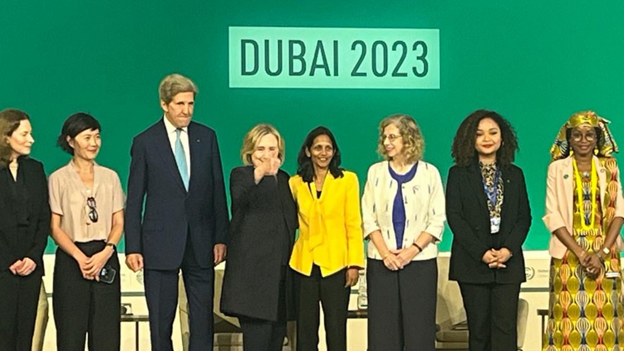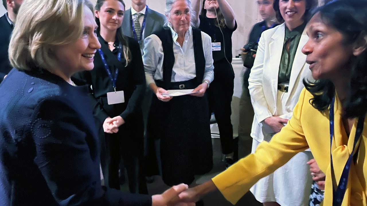 The focus then moved to one of the main COP28 plenary halls where Shemara joined former US Secretary of State Hillary Rodham Clinton and US Special Presidential Envoy for Climate, John Kerry, and other panellists in a discussion on ‘Women Building a Climate Resilient World’.