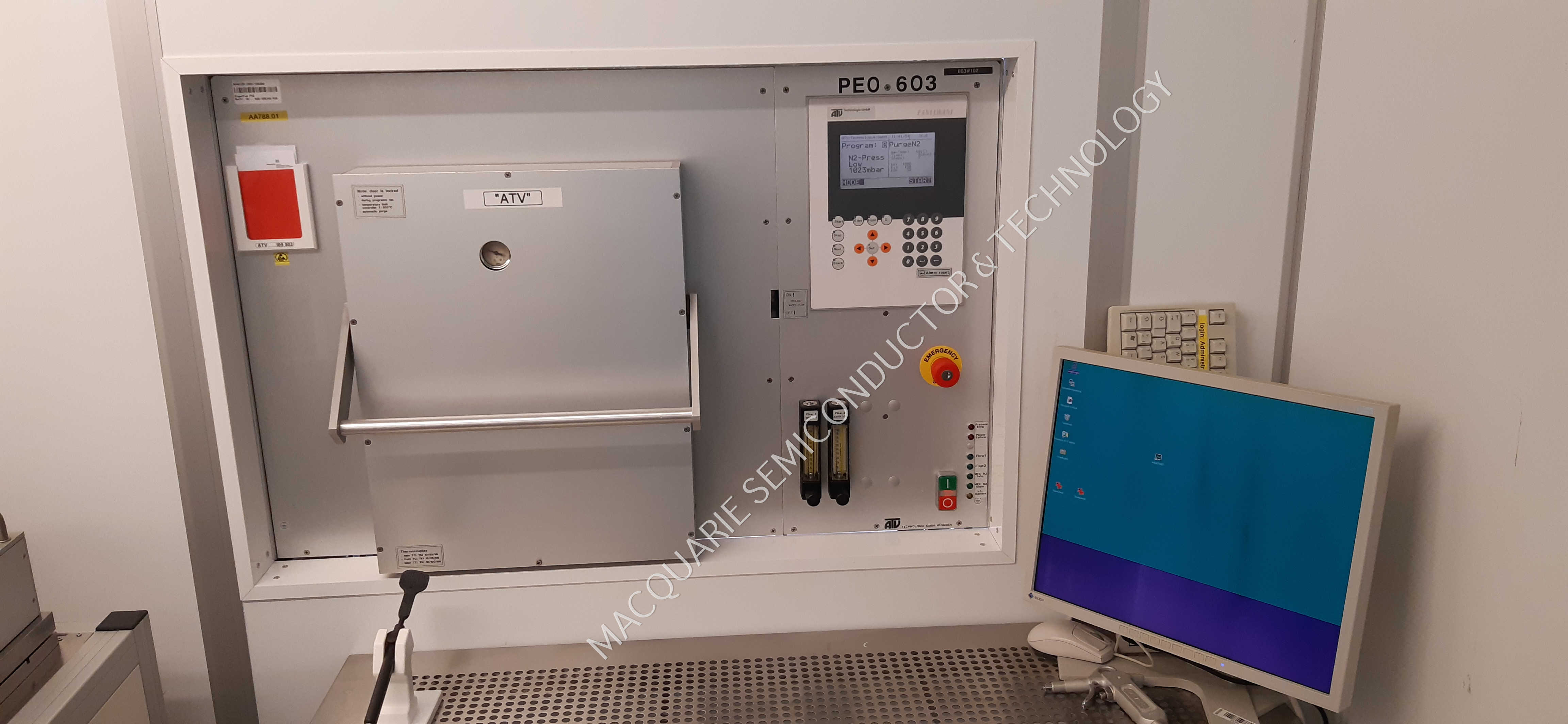 The ATV is a tube furnace that was used for post metal anneal, doping and anneals under N2 or vacuum up to 500°C.