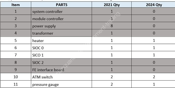 Missing parts comparison table,