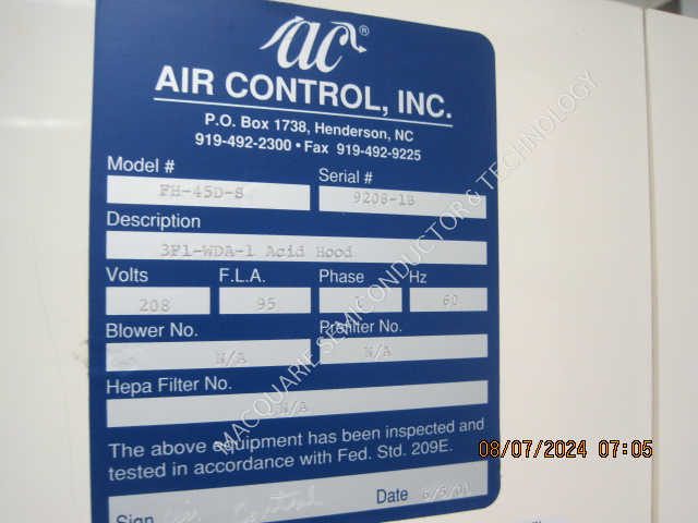 Air Control Inc Microvoid FH-45D Polypropylene Acid Fume Hood